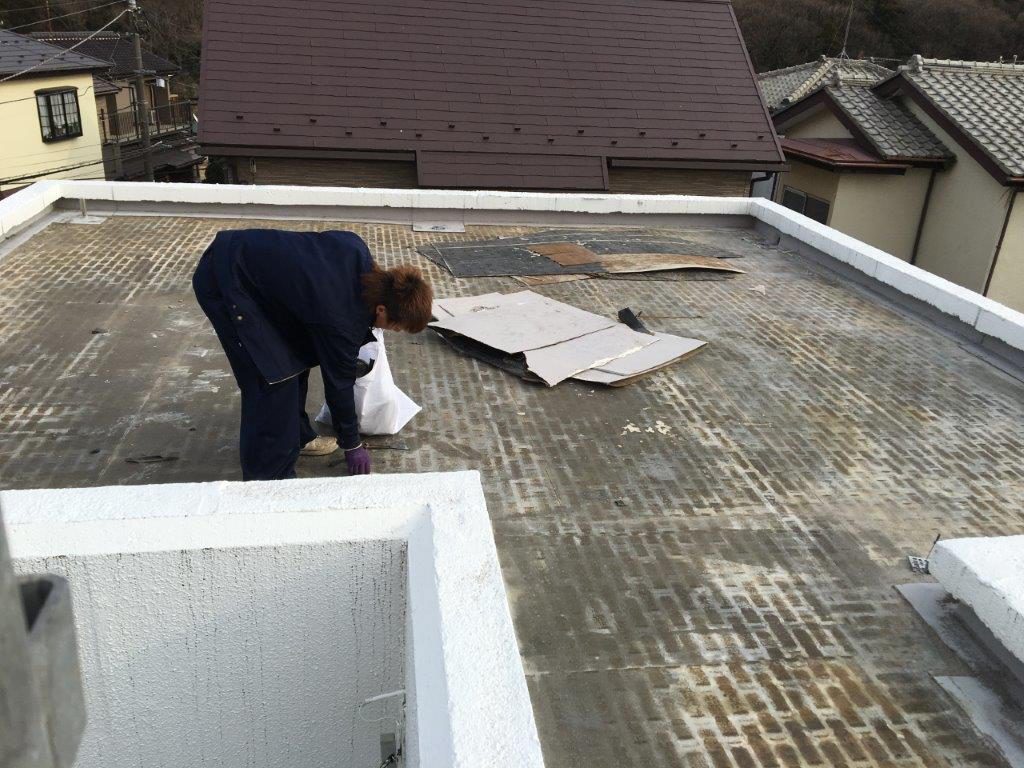 ![]() 既存のFRP防水層の劣化が激しくみられました。 |