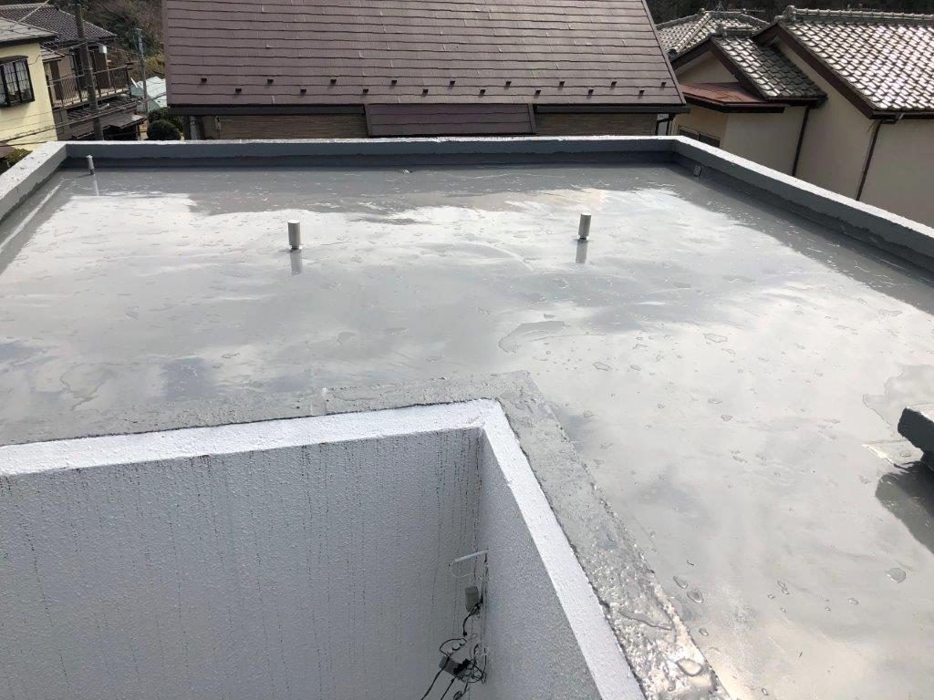 【谷川建装の解説】ウレタン塗膜(2層目)を塗布後、保護トップコートを塗布し施工完了です。