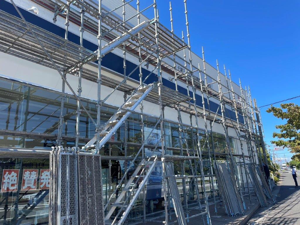 塗装工事に伴う仮設足場の組み立て|千葉県市原市の自動車ディーラーにて足場工事