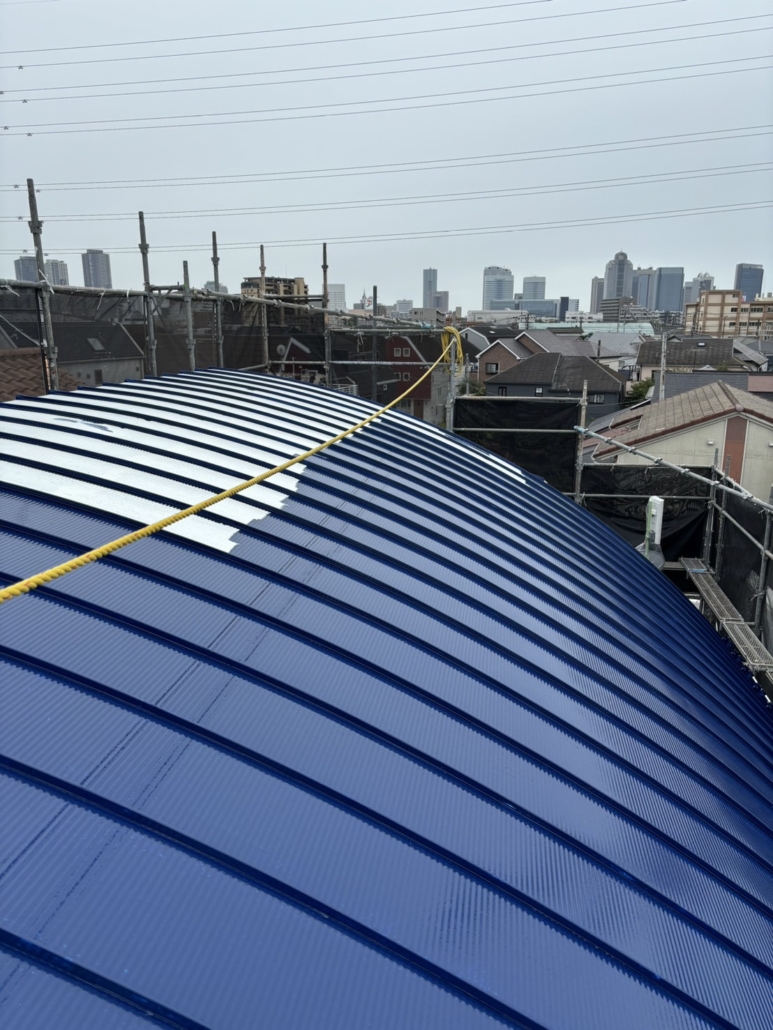 金属屋根の中塗り塗装(2回目の塗装)|千葉県市川市の戸建て住宅にて塗り替え塗装中